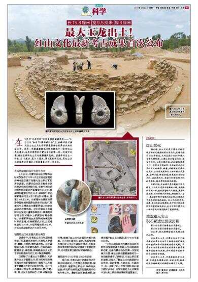 ■内蒙古发现红山文化考古出土的体量最大玉龙。 |