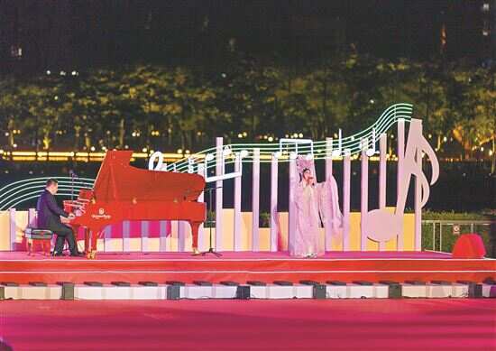 9月29日晚,广州塔下、珠江之畔,“湾区百琴颂中华”大型传唱会成功举办。100台三角钢琴在广州塔下呈现“75”字样,1000多名群众现场奏唱国歌,以传唱爱国歌曲的形式热烈庆祝中华人民共和国成立75周年。 ■采写:新快报记者 黄闻禹 ■摄影:新快报记者 观显锋 共唱经典 共庆祖国华诞 随着《红旗颂》前奏响起,“湾区百琴颂中华”传唱会正式拉开帷幕,100位来自不同领域、不同行业的钢琴演奏者同台齐奏100台三角钢琴,气势磅礴的演奏传递爱国情怀,礼赞新时代。 传唱活动分为“歌唱祖国”“情满珠江”“律动湾区”三个篇章,来自粤港澳大湾区的歌唱家、粤剧演员、流行歌手、群众代表相聚一堂,在百位钢琴演奏者伴奏下,演唱《中国人》《木棉红》《灯火里的中国》等经典歌曲,唱响爱国主义同一首歌,共同抒发对祖国的炽热情感、对新时代的美好祝福,展示粤港澳大湾区踔厉奋发的昂扬姿态。 百琴活动总导演、广东省青年联合会常委王伦表示,这是一场体现岭南特色、湾区特色的传唱会。“我们不仅有一百台钢琴合奏,还有来自大湾区各行各业的一千名群众分成绿美队、云山队、欢乐队、珠水队,大家欢聚一堂,选取了众多经典歌曲,如《海阔天空》《万水千山总是情》等传唱。经典旋律一出,大家自发地唱出了对祖国的热爱。” 一片片红色海洋,一声声嘹亮歌唱,一幕幕精彩演出,一次次掌声欢呼……百琴合奏、千人同唱、观众自发掀起“人浪”,现场群众尽情感受着节日的欢乐和奋进的力量。 75岁的老人文倩锾在传唱中几次眼泛泪光。“我与新中国同岁,我与祖国母亲一同经历了风风雨雨,更见证了75年来的辉煌成就。”文倩锾深情地说,“刚刚我参与了全场大合唱《我和我的祖国》,这是我以歌声的方式向祖国表达最真挚的祝福。” 律动湾区 唱响时代强音 在开放包容、人文相亲的湾区舞台,中国音乐金钟奖钢琴金奖获得者刘云天、星海音乐学院新疆维吾尔族学生迪拉热·迪力木拉提、小云雀合唱团等先后呈现精彩的表演,奏唱出了中国气派、湾区特色、岭南风韵,获得阵阵掌声和欢呼。 “参加这次活动,我既兴奋,又紧张。”迪拉热·迪力木拉提是星海音乐学院的大一新生,“《中国人》将对祖国的热爱和对民族的自豪感表达得淋漓尽致,我见证了家乡繁荣发展,每次听到这首歌曲,我的心里都充满了信心与力量。” “今天很荣幸能够参加此次传唱活动,我特别激动。”小云雀合唱团成员、第十三届世界合唱比赛中国童声唯一“双冠王”学生代表黄紫煊说,“《梦里的珠江缓缓地流》是我非常喜爱的一首歌,这首歌唱出了对珠江与广州的喜爱与赞美之情。” 从城市地标广州塔,到红了一城的木棉,到灯火里的中国;从平湖秋月的诗意,到盛世如愿的吾辈自强,再到让我们荡起双桨的美好生活……这是一场丰富多彩的文艺盛宴,更是展示粤港澳大湾区发展风貌的生动写照。 璀璨多彩的夜景、优美流畅的琴声、深情欢快的歌声……随着一首接一首熟悉的旋律响起,大家纷纷自发跟随音乐节拍一同歌唱,以歌声向祖国母亲深情“告白”。 最后一曲《我和我的祖国》把气氛推向了最高潮,引发全场大合唱,唱出了对伟大祖国的热爱,对美好生活的向往,唱响了湾区儿女昂扬向上、奋发进取的时代强音。 本次活动由中共广东省委宣传部指导,中共广州市委宣传部主办,广州珠江钢琴集团股份有限公司、广州塔旅游文化发展股份有限公司联合承办。