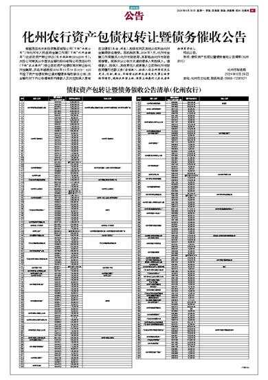 根据茂名市水务投资集团有限公司(下称“水投公司”)与化州市人民政府金融工作局(下称“化州金融局”)达成的资产转让协议(茂水投批转[2016]005号)。水投公司将其从中国农业银行股份有限公司茂名