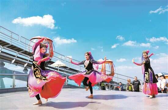 ■10月1日上午,“我和我的祖国·红色颂歌”文旅快闪活动在广州塔塔顶举行,唱响“强国复兴有我”新时代主旋律。新快报记者 龚吉林/摄影报道