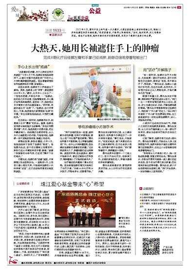 完成8期化疗后佳娜左臂和手掌已经消肿,能够自信地穿着短袖出门 温暖1633号 ●温暖诉求 2023年4月,雷州半岛上的气温一天天攀升,小朋友纷纷换上清凉的短袖上衣,唯独11岁的