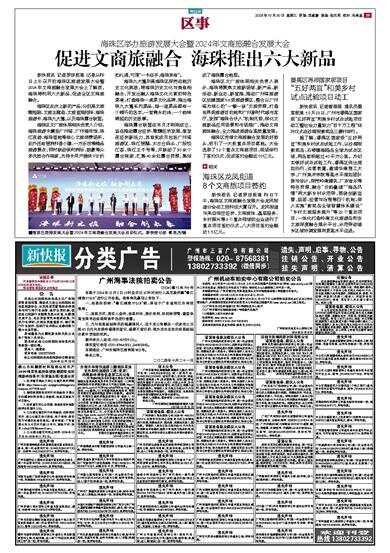 海珠区举办旅游发展大会暨2024年文商旅融合发展大会 新快报讯 记者罗琼报道 记者从昨日上午召开的海珠区旅游发展大会暨2024年文商旅融合发展大会上了解到,海珠将利用六大新品,促进全区文商旅融合。 海珠区此次上新的产品,分别是文旅微短剧、文旅主题曲、文旅宣推矩阵、海珠旅游卡、海珠九大簋,以及海珠露台联盟。 海珠区文广旅体局相关负责人介绍,海珠旅游卡囊括广州塔、广州海洋馆、珠江夜游、海珠湿地等核心文旅消费场所,此外还有琶洲科普小镇、一方乐田等精品旅游景点,同时联动保利洲际、朗豪等众多优质合作商家,为持卡用户提供VIP折扣礼遇,可谓“一卡在手,海珠我有”。 海珠九大簋则是海珠区深挖在地历史文化典故,将海珠历史文化与美食相融合,开发出融入海珠文化元素的特色菜肴,打造海珠一桌菜文化品牌,推出海珠九大簋系列菜品,每一道菜品都有一个精巧的名字,一首隽永的诗,一个韵味绵延的历史故事。 海珠露台联盟在本月才刚刚成立,旨在推动露台经济、微醺经济发展,激发夜经济新活力,其首批成员包括广州塔旅游区、珠江琶醍、太古仓码头、广报悦江荟、珠江王子号等,并联动了30余个露台商家,汇集40余处露台资源,集结成了海珠露台地图。 海珠区文广旅体局相关负责人表示,海珠将聚焦文旅新场域、新产品、新活动、新业态、新宣推,推动广州塔旅游区创建国家5A级旅游景区,整合以广州塔为核心的“一横一纵”文旅资源,打造世界级旅游目的地和广州新时代城市客厅,发挥“海珠合伙人”机制优势,深化文旅新品应用场景和市场推广,推动文商旅体融合,全力推进旅游业高质量发展。 海珠区凭借文商旅融合发展的好势头,吸引了一大批重点项目落地。大会选取了12个重点文商旅项目,现场举行了签约仪式,促成签约金额近10亿元。 相关 海珠区龙凤街道8个文商旅项目签约 新快报讯 记者罗琼报道 昨日下午,海珠区文商旅融合发展大会龙凤街道分会在工控科创大厦召开。龙凤街道与来自低空经济、文商旅体、基层服务、乡村振兴等8个重点领域的企业进行了重点项目签约仪式,八大项目签约金额达1.5亿元。
