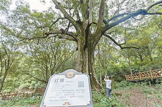 ■已有1300年历史的红锥古树,树干粗壮,枝繁叶茂。 |