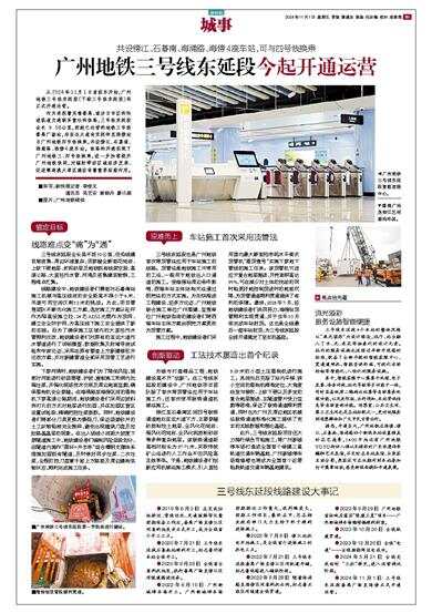 广州地铁三号线东延段今起开通运营