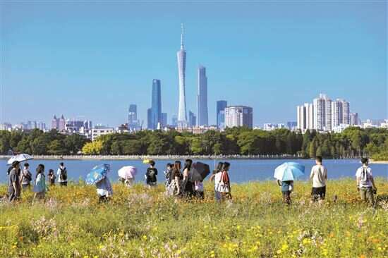 ■在海珠湖公园,大批游客前来拍照打卡。(资料图)新快报记者 龚吉林/摄 |