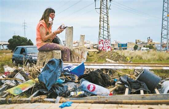 ■11月3日,一名志愿者在西班牙巴伦西亚拉托雷地区用餐。新华社发 |