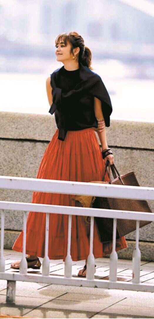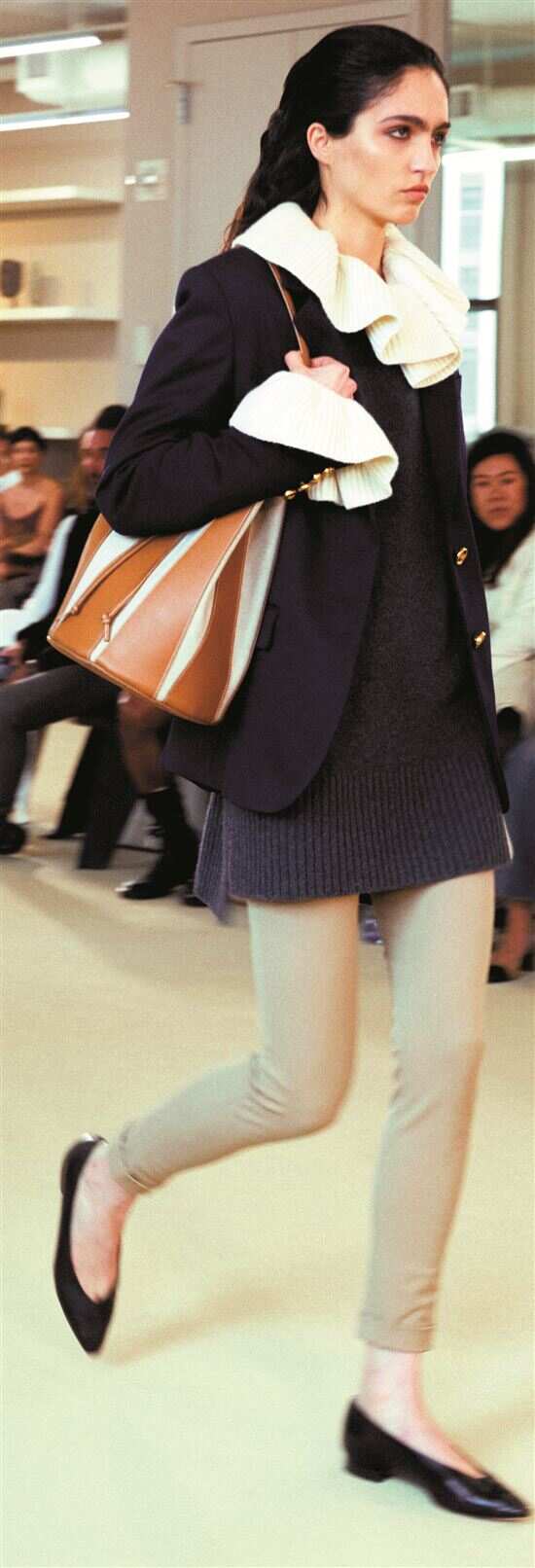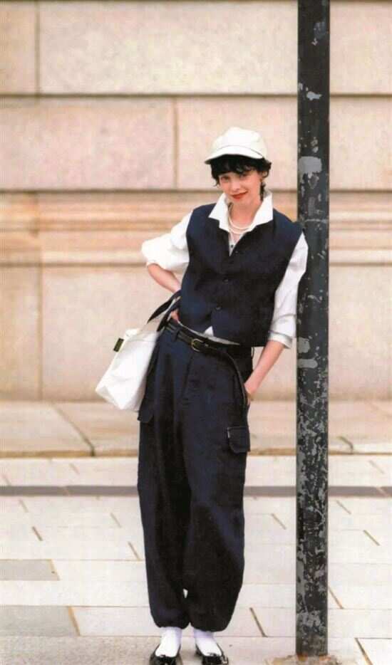 用暖调复古色调和海军蓝的清冷感,既有对比度又保持造型穿搭的整体和谐,令人印象深刻。 |