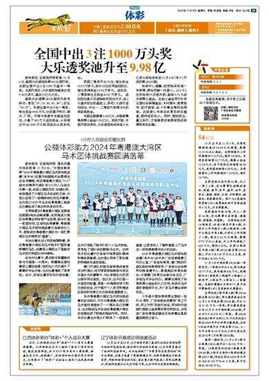 新快报讯 记者陆妍思 通讯员惠州体彩报道 11月3日,“中国体育彩票”2024年粤港澳大湾区马术团体挑战赛(惠州站)在惠州柏骏骑术会圆满完成各项赛程,来自粤港澳大湾区“9+2”城市的精英代表队的