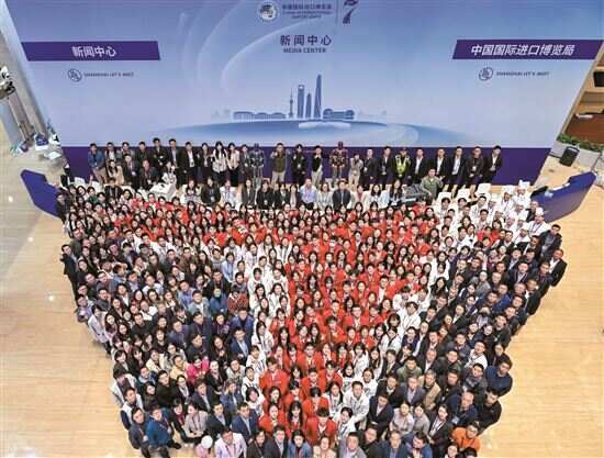 ■11月10日,志愿者及工作人员在新闻中心摆出数字“7”的造型。新华社发 |