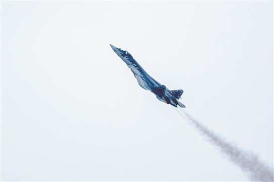 ■苏-57进行适应性飞行训练。 |