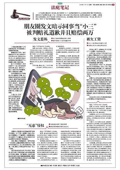朋友圈发文暗示同事当“小三” 被判赔礼道歉并且赔偿两万