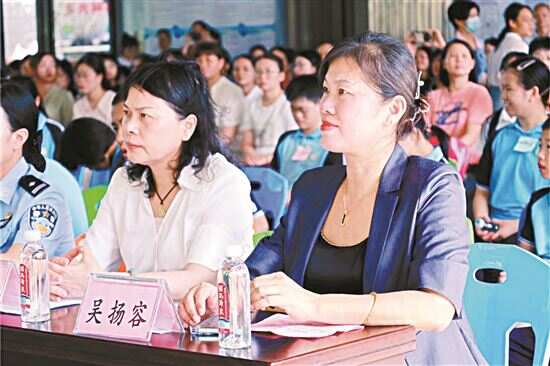 ■今年6月13日,吴扬容(右)在化州市“爱心妈妈结对关爱行动”活动现场。 |