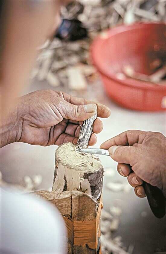 ■工人正在剥离树木取沉香。 |