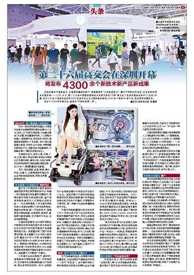 第二十六届高交会在深圳开幕 将发布4300余个新技术新产品新成果