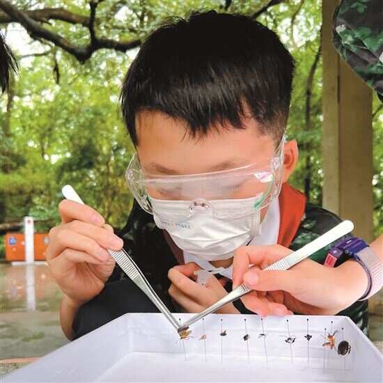 ■东风西路小学观鸟舍成员正在进行昆虫标本制作。 |