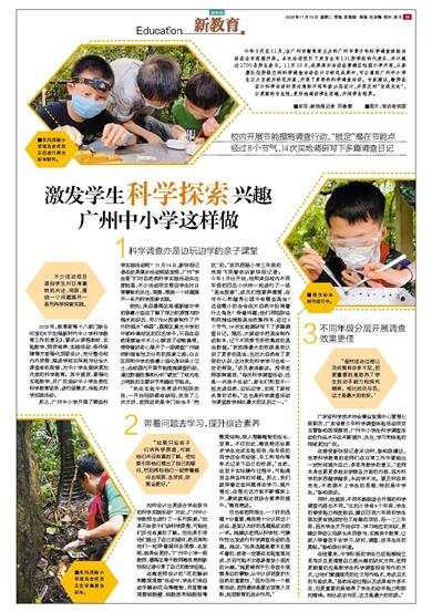 科学探索 广州中小学这样做 校内开展节能措施调查行动,“锁定”潜在节能点 经过8个节气、14次实地调研写下多篇调查日记 今年9月至11月,由广州市教育局主办的广州市青少年