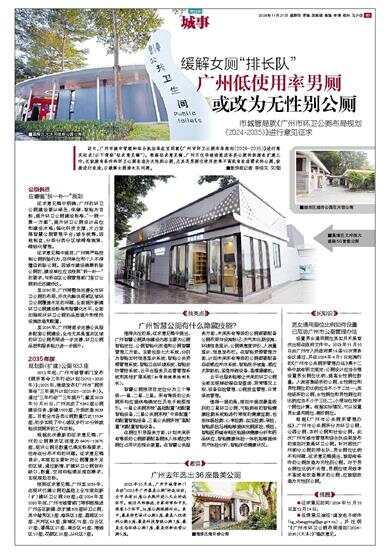 市城管局就《广州市环卫公厕布局规划(2024-2035)》进行意见征求 近日,广州市城市管理和综合执法局在官网就《广州市环卫公厕布局规划(2024-2035)》进行意见征求(以下简称“征求意见稿”)。根据征求意见稿,广州不仅将继续推进各类公厕的新建改扩建工作,还鼓励有条件的环卫公厕改造为无性别公厕,尤其是男厕位使用效率不高或有改造需求的公厕,鼓励进行改造,以缓解女厕排长队问题。 公厕拆迁 应遵循“拆一补一”原则 征求意见稿中明确,广州的环卫公厕建设要以绿色、低碳、智能为目标,提升环卫公厕建设标准:“一厕一景一方案”,提升环卫公厕设计品位和建设水准;强化科技支撑,大力发展智慧公厕管理平台;城乡统筹,因地制宜,分级分类分区域精准施策、精细化管理。 征求意见稿中提到,广州将严格控制公厕拆除行为,任何单位和个人不得擅自拆除公厕。因城市建设确需拆除公厕的,建设单位应当按照“拆一补一”的要求,与所在区公厕管理部门签订公厕拆迁还建协议。 至2030年,广州将整体完善全市环卫公厕的布局,并优先解决局部区域环卫公厕覆盖不足的问题,全面提升新建环卫公厕建设标准和智慧化水平,全面加强现状环卫公厕的品质提升和便民设施改造和配置。 至2035年,广州将逐步完善公共服务配套公厕建设,全市尤其是重点区域的环卫公厕布局进一步完善,环卫公厕品质和服务能力进一步提升。 2035年前 规划新(扩建)公厕933座 2018年起,广州市城管部门发布《厕所革命三年行动计划(2018-2020年)》;2021年,继续发布《广州市“厕所革命”三年提升计划(2021-2023年)》。通过“三年行动”“三年提升”,截至2023年10月31日,广州完成了5342座公厕建设任务,新建1509座,升级改造3833座。目前全市各类公厕数量已达11534座,初步实现了中心城区步行20分钟就能找到厕所的工作目标。 根据此次最新的征求意见稿,广州的公厕需求区间值为6405-10675座,现状公厕总数量已满足标准要求,但存在分布不均的问题。征求意见稿表示,本规划主要针对公厕覆盖不足的区域,通过新增、扩建环卫公厕弥补缺口,数量、空间均能满足规划需求,实现规划目标。 按照征求意见稿,广州至2035年,在现状已建公厕的基础上全市规划新(扩)建环卫公厕933座;在2024年至2030年间,广州市城管部门将积极推进广州各区新建、改扩建308座环卫公厕,其中越秀区8座、海珠区8座、荔湾区10座、天河区63座、黄埔区78座、白云区27座、番禺区27座、南沙区45座、增城区10座、花都区25座、从化区7座。 【找亮点】 广州智慧公厕有什么隐藏技能? 值得关注的是,征求意见稿中提出,广州智慧公厕具体建设内容主要为公厕智能定位、公厕智能化改造和公厕智慧管理三方面。主要包括七大系统,分别为智能实时信息显示系统、智能公共资源管理系统、智能卫生环境系统、智能安防管控系统、云平台服务及运营管理系统和其他扩展系统(如智能健康检测系统)。 智慧公厕按项目定位分为三个等级:一星、二星、三星。所有等级的公共厕所均应提供准确定位及电子地图指引。一星公共厕所按“基础配置”档配置智能设备,二星公共厕所按“中级配置”档配置智能设备,三星公共厕所按“高配置”档配置智能设备。 在厕位引导服务方面,计划未来所有等级的公厕都要配备厕体人体感应和厕位占用状态指示装置。在智慧公共服务方面,未来所有等级的公厕都要配备公厕布局与设施标记、天气和日期设施、环境信息显示、公厕满意度评价、人流量显示、信息发布栏。在智能资源管理方面,计划未来所有等级的公厕都要配备自动感应冲水系统、智能洗手液盒、感应式取纸机、紧急呼救设备、高清摄像机。 云平台服务能够让未来的环卫公厕全部实现移动端自助查询、异常情况上报、设备自检管理、公厕质监管理、日常保洁管理。 值得一提的是,规划中提到最高级别的三星环卫公厕,可能拥有的智能健康检测系统能进行常规的健康监测,包括体温检测、心率检测、血压检测、孕检,智能尿检马桶能够提供如厕尿检、便检,智能医药储存柜还能提供健康分析和药品供应,智能健康体检一体机能够提供用户体检分析,智能评估健康状况。 【长知识】 男女通用厕位比例如何设置 已写进广州市公厕管理办法 设置男女通用厕位其实并不是首次出现在政府文件中。2023年11月10日由广州市人民政府第16届52次常务会议通过,并在2024年4月1日起施行的《广州市公共厕所管理办法》第十二条中就有明文规定:公厕设计应当合理设置男女厕位比例,提高女性厕位数量。人流密集场所的公厕,女性厕位和男性厕位的比例应当不小于二比一;其他场所的公厕,女性厕位和男性厕位的比例应当不小于三比二,小便站位按半个厕位计算。根据实际情况,可以设置男女通用厕位、潮汐厕位。 根据《广州市公共厕所管理办法》,广州市公共厕所分为环卫公厕、公园公厕、农村公厕和社会公厕。此次广州市城市管理和综合执法局发布的规划对象是环卫公厕。针对困扰广州部分公厕的排长队、男女厕位比例不均问题,征求意见稿提出,鼓励有条件的公厕改造为无性别公厕。对于男女厕位比例不合理,男厕位使用效率不高或有改造需求的公厕,应鼓励改造为无性别公厕。 【数说】 广州去年选出36座最美公厕 2023年10月底,广州市城管部门启动“2023年广州最