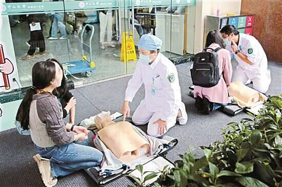 ■这是中山三院医护人员科普心外按压急救知识的现场。受访者供图 |
