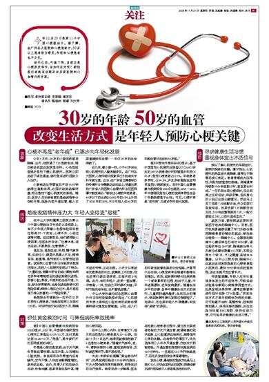 今年11月20日是第11个中国心梗救治日。据了解,在广州各大医院的心梗患者中,50岁以上患者较为常见,年轻的心梗患者也不少见。 秋冬已至,气温下降,当前正是心梗易发季节,该如何应对呢?新快报记者就该话题采访多家医院的心血管内科专家。 现象 心梗不再是“老年病” 已逐步向年轻化发展 今年1月初,29岁的小黄突然感到胸痛、出汗,他拨通了120急救电话,随后被送到就近医院急诊科。心电图检查提示急性下壁心肌梗死。医院立即启动了绿色通道,绕行急诊进行冠脉介入治疗。 小黄被送达导管室后不到15分钟就得出造影结果,右冠状动脉远端闭塞,符合急性下壁心肌梗死的表现。随后,医护人员训练有素的急救流程争分夺秒开展,冠脉内溶开通血管,植入支架重建狭窄血管……年仅29岁的生命得救了。 近几年,像小黄一样,小于40岁却出现心肌梗死的人越来越多见。在广州各大医院,心梗年轻化现象早已引起有关专科专家注意。近日,在广东省卫健委举办的岭南时令与健康访谈活动上,受邀出席的广东省人民医院心血管内科主任医师谭宁教授表示:“接诊过心梗的年轻患者,40岁以下的比例从2000年的10%上升到了2020年的20%,不少年轻人在30岁的年龄血管状态却如50岁般。” 据《中国体外循环杂志》显示,基于中国急性心肌梗死注册登记(CAMI)研究的24125例患者分析数据显示年轻(≤45岁)急性心梗患者占8.5%。年轻患者多男性,占94.3%,并且多有高脂血症和早发冠心病家族史。而《中国心血管健康与疾病报告2023》也提到,2021—2022年中国居民急性心梗的发病率男性在各个年龄段都高于女性。可见,心梗不再是“老年病”,已逐步向年轻化发展。 探因 熬夜吸烟精神压力大 年轻人变得更“易梗” 在中山大学附属第三医院为第11个中国心梗救治日专设的义诊现场上,有不少年轻人带着心电图体检报告前往咨询ST-T改变、心律不齐、心动过速等问题。经过解答后,他们都排除心梗因素,但医生忠告说:“注意休息,适当运动,不要熬夜,注意营养。” 高血压、高脂血症、吸烟、糖代谢异常、运动过少、蔬菜水果摄入不足、精神紧张、超重等,是传统的心血管危险因素。该医院心血管内科主任钱孝贤教授还指出,年轻人心肌梗死呈现以下特点:“大量吸烟,烟雾中所含的细小颗粒和两百多种有毒物质会加速动脉硬化进程,伤害心脏;熬夜,不规则的生活作息,久坐,缺乏体育锻炼,也是促进动脉硬化的危险因素;精神心理压力过大,是不容忽视又难以改善的一个危险因素。” 钱教授去年曾救治一名年仅22岁的男性心梗患者。“他是深夜两三点拨打120的。问诊时他还告诉医护人员,胸痛不适的时候,正在加班。小伙子日常就有加班熬夜的状态,就算晚上不加班,他也经常打游戏到深夜,且每天吸3包烟。此外,有的年轻人,进来一查血糖,非常高,一问,他自己平时都不知道,平时可能没有体检、也不重视血糖。” 中山大学孙逸仙纪念医院心血管外科主任郑俊猛教授亦指出:“心肌梗死本质上是供应心脏血流的动脉血管粥样硬化继发血管堵塞。以往,在人们的印象里就像电路老化会短路,水管用久会生锈,心梗发病率会随着年龄增长而增加。然而,动脉粥样硬化性疾病是一个逐渐累积的过程,起始于儿童,中年进展最快,老年发病最多。随着生活水平的改善、各种不健康生活方式的流行、儿童肥胖越来越多、生活压力的增大,使动脉粥样硬化发展过程缩短了。”他表示,这也是年轻人外表健康,却变得“易梗”的原因。 对策 抓住黄金救治时间 可降低病死率致残率 据《中国心血管健康与疾病报告2023》显示,2021年,中国城市居民急性心梗死亡率高达63.25/10万,农村更是达到83.26/10万。“危急”,是专家们不约而同提到的词汇。 冬季是心梗的高发期,由于天气寒冷导致血管收缩,血压升高,从而增加心脏负担。有些场所在冬季室内设有暖气,空气干燥,人体血液黏稠度增加,易形成血栓。此外,冬季人们往往缺乏运动,饮食油腻,容易导致血脂升高,增加心梗风险。 在中山三院心内科,日常情况下,每月收治的急性心梗患者为20-30例。而在11月17日这天,钱孝贤就接连抢救了4名急性心梗患者。“随着天气渐冷,老、中、青群体预防心梗、重视发病信号、及时就医等环节,都不容忽视。” 为此,专家纷纷提醒“黄金救治时间”:如果发病后能在120分钟内救治,可大大降低病死率和致残率,取得良好的治疗效果。钱孝贤进一步解释,医生在抢救心梗患者过程中,通过放支架或者溶栓的方式开通血管,疏通堵塞的冠状动脉,让心脏重获血液供应,是降低死亡率的关键。在有条件的情况下,优先选择用介入手术开通血管,疗效优于药物溶栓。开通血管的理想时间是发病后120分钟内。一旦超过12小时疗效就差了,而且并发症的发生率显著增加。 发生心梗,最有效的急救方法是马上拨打120,尽快送至附近的医院,明确诊断后进行溶栓或介入或者是其他的治疗。 预防 寻求健康生活习惯 重视身体发出不适信号 群众了解心肌梗死的早期症状,是预防疾病的关键。谭宁指出,心肌梗死的典型症状是胸痛,通常位于胸骨后或心前区。患者常感觉为压榨性、闷胀性或窒息性疼痛。疼痛通常持续数十分钟至数小时,甚至更长时间。“一旦识别出现心梗症状,应立刻停止任何活动,保持安静,告诉身边的人自己出现心梗情况。然后马上舌下含服1片硝酸甘油,并立