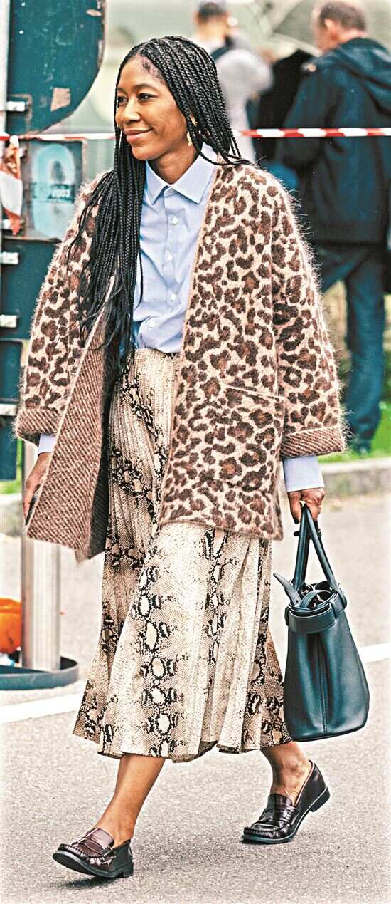 ■大面积或具有夸张廓形的豹纹单品如大衣、宽肩西装、礼服裙等容易压身高和气场,小个子时髦精慎选。 |