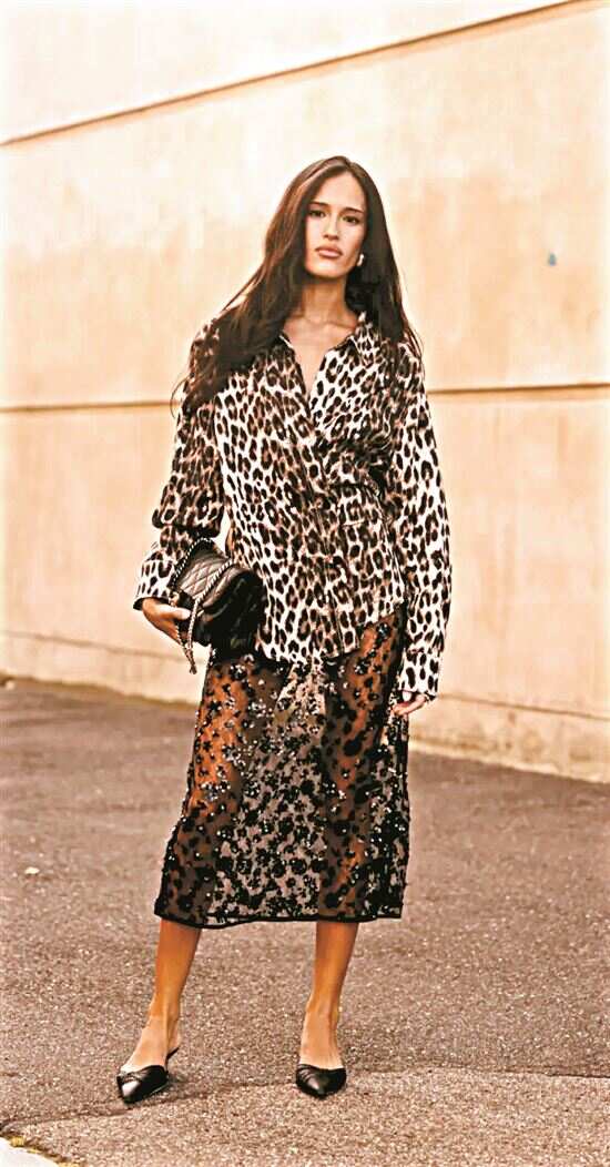 ■半裙是让豹纹造型“落地”更多场合的不错选择,搭配基础款上衣也能出彩。 |