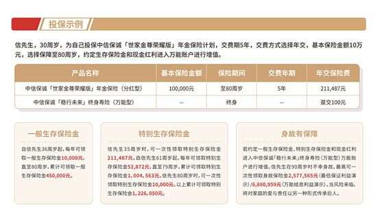继九月份中央政治局会议对中国经济政策作出新的部署以来,金融监管部门推出的一系列超预期政策已经大幅推升了股市信心,改变了全球投资者对中国资产的定价预期。 人们都希望在向好的权益市场中分得一杯羹,然而投资收益和风险相伴而生,直接投资资本市场风险太高,在权益市场中获利的同时也希望拥有更多确定性。这种财富管理的“既要又要”,可有两全之策?在低利率市场环境下,近期逐渐成为保险市场香饽饽的分红险,或许可以解决这个难题。 什么是分红险? 总体来说,分红险是较为复杂的保险产品,很多消费者对其不甚了解。 分红保险是指保险公司将其实际经营成果产生的盈余,按一定比例向保单持有人进行分配的人身保险产品,分配给保单持有人的比例不低于可分配盈余的70%。 分红险的首要功能是提供人身风险保障,有一定的确定保险利益或者最低现金价值。 如果保险公司经营得当,能够超长期地穿越各种经济周期,同时合理合规地运用分红险固有的红利平滑机制,就能够长期稳定地向保单持有人分配盈余。 分红险怎么选? 该如何挑选分红险?中信保诚人寿总精算师聂方义认为,应从产品、司品、人品的角度考虑挑选分红险。 第一是看产品,首先要从自身真实风险保障需求出发,这样才能确保保险配置的大方向是对的。如果客户的保障着眼点在身价保障或财富传承,可以考虑分红型的终身寿险。如果保障需求在长寿风险保障或养老规划,则可考虑分红型的年金保险或养老年金保险。 第二是看司品,因为分红险的实际红利水平是不保证的,所以具体承保的保险公司经营品质对分红险而言更为重要。保险公司是否能做到长期稳健经营、真正实现销售时所演示的红利水平,是分红险发挥其固有功能的核心关键。 第三是看人品,即具体销售分红险的销售人员的专业品质。很多消费者需要专业的保险销售人员进行讲解、分析方能做到合理配置。保险公司也需对销售人员提供分红险的专项培训,合格后才能进行分红险的销售。 一年内两获股东大手笔增资 据悉,中信保诚人寿近日发布公告披露,中信金控和保诚集团将分别向中信保诚人寿再增资人民币12.5亿元。本次增资完成后,中信保诚人寿注册资本将由48.6亿元达到人民币73.6亿元。在不到一年的时间里,中信金控和保诚集团拟向中信保诚人寿进行第二轮增资,凸显了中外双方股东对中国经济和中国寿险业发展的持续看好。 2024年以来,中信保诚人寿持续优化业务结构、加强渠道建设、提升业务质量,在产品布局方面逐步向长缴别、高价值产品的方向转型,分红险和健康险产品占比不断提升。截至2024年9月末,公司实现新业务价值23.7亿元,同比增长22%,新业务价值率同比提升8.8个百分点。 据了解,中信保诚人寿目前正在积极推进新会计准则在公司的落地工作。按新会计准则计算,公司持续实现盈利,2024年前三季度净利润与2023年全年利润持平,净资产已超百亿元,相较半年度显著增长。 中信保诚人寿年终巨献耀眼夺目 作为中信保诚人寿2024年的年终巨献,中信保诚「金耀未来」终身寿险(分红型),以及中信保诚「世家金尊荣耀版」年金保险计划两款产品近日重磅上市。 其中,中信保诚「金耀未来」终身寿险(分红型)是一款分红型的终身寿险,该产品具有四大亮点: 第一,锁定终身,稳健增长。按合同约定,提供终身保障,有效保额以每年2.0%增长率逐年递增,保单价值持续增长,稳健安全无惧经济波动。 第二,红利保额,持续累积。可参与公司分红,每年根据可分配盈余获得增额红利,持续积累红利保额,拥有更多增值空间。 第三,轻松投保,多种权益。投保年龄最高至70周岁,多种交费方式供您选择;还可通过保全或保单服务进行部分减保、指定第二投保人、保单借款等应对未来多元规划。 第四,财富传承,家业长青。可根据需求灵活设定一位或多位受益人、受益顺序和受益份额,提前规划财富传承,为家庭提供更长久关爱与呵护。 中信保诚人寿另一款年终巨献——中信保诚「世家金尊荣耀版」年金保险计划,由中信保诚「世家金尊荣耀版」年金保险(分红型)和中信保诚「稳行未来」终身寿险(万能型)组成。该产品的亮点也颇具特色: 第一,固定投保,按约领取。按合同约定,保险期间内,可领取稳定的生存保险金,直至保险期间届满,安心锁定长久利益。 第二,按需双选、细水长流。保障期可选保至80周岁或保至100周岁,根据需求选择保障长度,随心安排幸福人生。 第三,红利添喜,分享收益。可享有公司红利盈余分配权,共享公司经营成果,为财富添加更多增长机会。 第四,万能助力,加速积累。可选择关联万能账户,若将现金红利、生存保险金转入,账户价值可按照公司每月实际结算利率继续增值(最低保证年利率为1.5%,结算利率超过最低保证利率的部分是不确定的)。 第五,享老无忧,传递关爱。为自己、为家人、为孩子,积累丰厚财富,满足未来不同的资金需求。 中信保诚人寿广东省分公司总经理官利伟表示,中国财富管理市场正大步跨入全新的时代,中信保诚人寿在今年底隆重推出「金耀未来」终身寿险与「世家金尊荣耀版」年金保险计划两款专属分红产品,与客户共迎财富机会,共享时代红利。两款产品各具特点,功能互补,致力于满足客户不同人生阶段的多层次财富管理需求。「金耀未来」终身寿险能够帮助客户构