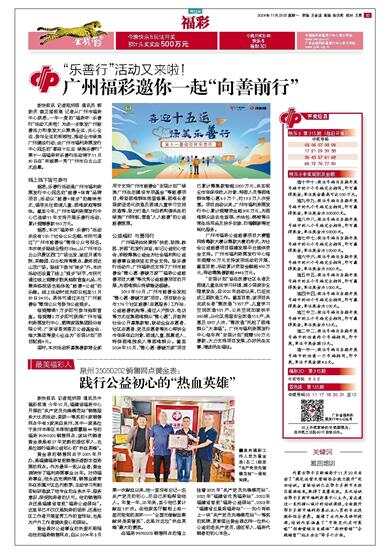 新快报讯 记者陆妍思 通讯员 郭新庆 盘芷滢报道 记者从广州市福彩中心获悉,一年一度的“福彩杯·乐善行”活动又来啦!为进一步激发广州慈善活力和激发大众聚焦全运、关心全运、参与全运的积极性,推动全