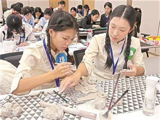 ■中职学生在比赛中设计制作实物宣传作品。 |