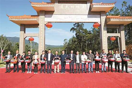 “吃上这碗甜汤圆,意味着我们要团团圆圆、红红火火发展……”吃着村里提供的各色美食,阳江市阳西县塘口镇上垌村的村民开心地对新快报记者说。 11月26日,上垌村锣鼓喧天、雄狮劲舞,来自阳江市阳西县、塘口镇以及各村的嘉宾、驻塘口镇帮镇扶村工作队、上垌村村民和外出乡亲一起,共同参加了塘口镇“享非遗技艺 品富硒美食”推介暨“桑梓情深 反哺家乡”上垌村门楼启用活动,凝心聚力共同投入百县千镇万村高质量发展工程。 ■采写:新快报记者 曾贵真 ■摄影:新快报记者 王飞 15村携土特产道贺 非遗美食吸引眼球 “今天我们全村都很开心,这是我们历史上的第一次。”11月26日一早,上垌村的兴叔和众多村民、外出乡亲们早早就来到了村口。当天,在各界嘉宾的见证下,一座由乡亲们“你300、我1000、他1万”共同捐资建成的门楼正式落成。 周南村的蔬菜、旧寨村的笋干、横山村的香蕉、竹迳村的毛薯、甶高的栗子薯、同由村的“红姑娘”番薯及蜜糖……活动现场,随着主持人的精彩介绍,塘口镇15个村分别上台展陈各自的富硒农产品,见证产业振兴,向上垌村道贺。 活动现场还展示了塘口土茯苓膏、黄皮果鸡汤、鸭脚木碱水粽、阳西大糠糍、黄皮叶双色豆腐等各种市、县级非遗美食的制作,同时邀请嘉宾和乡亲们一起品尝各色美食。 当天,活动还安排了舞龙舞狮及歌唱表演,活动现场里外三层,热闹非凡。 外出乡亲反哺家乡 典型村建设亮眼 一座门楼的建设,为何会如此受关注?省社科联党组成员、专职副主席,省乡村振兴驻塘口镇帮镇扶村工作队队长、塘口镇党委副书记曾赠在致辞时表示,门楼的落成是塘口镇乡村全面振兴的缩影和形象展示。他表示,三年前,上垌村还是一个默默无闻的小山村,在镇党委、政府的有力指导下,在广大干部和群众的努力下,如今已成为全省百县千镇万村高质量发展工程的典型村,其发展经验和模式值得全镇各村学习和推广。 新快报记者了解到,今年上垌村在阳江全市2024年度90个典型村培育综合评估初评中获得最高分,对此,外出乡亲的助力功不可没。 阳西县政协主席张宜春在接受新快报记者采访时表示,上垌村的外出乡亲很有家乡情怀,积极出力支持百县千镇万村高质量发展工程,这次门楼的落成回应了村民们长期的期盼,有助于促进乡村未来的发展。 “心系故土,深耕故乡。”塘口镇党委书记林振许在活动中高度称赞了上垌外出乡亲们的深厚情谊。他介绍,近年来,上垌村引导外出乡亲投资超2000万元,累计捐款超1000万元推动家乡建设,助力村人居环境整治工作,推进完成村道硬底化,建设篮球场、停车场等设施,安装路灯,修建门楼等;同时外出乡亲积极捐赠耕田机、收割机,10多年来都聘人免费为村民耕地、收割,极大地推进撂荒耕地复耕复种,大大增强了群众的获得感、幸福感。 “门楼落成只是开始,我们希望通过这次活动,外出乡亲,包括外嫁女们都能回到家乡看一看,一起为家乡的建设发展出谋划策,共同推动百县千镇万村高质量发展工程落地见效,助力乡村全面振兴。”上垌村党总支书记黄国威对新快报记者说,在村民和外出乡亲的共同努力下,如今上垌村的乡村振兴正在如火如荼地进行,胭脂米种植成为一大品牌,如今卖到了268元一斤,下一步还要挖掘潜力,提升附加值。村里还引进外出乡亲投资,养殖了800头黑山羊,村里有一万多亩林地,下一步准备探索推广。 一座门楼的落成看似简单,却把上垌村的干部群众、外出乡亲的心牵在了一起,让上垌村的建设发展上了一个新台阶。