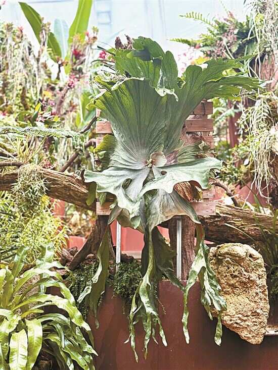 ■高2米的女王鹿角蕨,云萝植物园的“镇园之宝”之一。 |