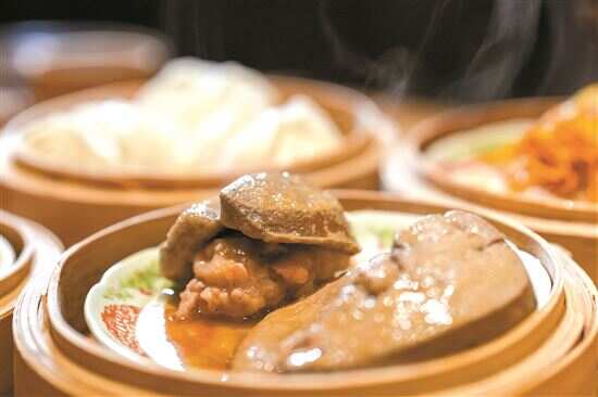 ■新快报记者 陈斌/文 郭思杰 观显锋 龚吉林/图 “食在广州,得闲饮茶”,老广耳熟能详的一句“日常”。 上世纪四五十年代是广式茶楼最兴旺的时期,茶室、茶寮、茶楼等可谓“遍地开花”,仅长堤一带大型茶楼酒家食肆就集中了数十间,白热化的市场竞争催生出了“星期美点”“天天美点”来招揽食客。 如今,在广州老牌食府惠食佳旗下的啫八,除了经典啫煲之外,那些常见的、不常见的广式点心亦“整装待发”,亟待有缘人的点选。点心纸上大约有40款广式点心,分为“招牌必点”“传承美点”“西关名食”“羊城甜品”和“星期美点”,每两周点心纸会做一次更新调整,既有新出款,也有“梅开二度”款,不一而足。其中“招牌必点”和“传承美点”的不少点心款式,在怀旧之余有所提升或更新,值得下单品尝。 【生煎鲜虾饺】 啫八在传统广式鲜虾饺的基础上,充分利用自身啫煲这一特色器皿,将鲜虾饺放入啫煲里煎熟,卖相上更为别致,口感也更丰富。 【五凤鲜虾饺】 “招牌必点”排在首位的是五凤鲜虾饺,这名字一看便知是最初出自广州五凤的“点心之父”广式鲜虾饺了。 【酿猪膶烧卖】 选取厚度够、形状好且少筋的猪肝部位,据说一副猪肝就能出这么一块“符合要求”的料,以姜葱水和纯米酒腌透杀去腥臊味,再把烧卖的馅“酿”到搭成翅膀似的猪肝里,吃来就三个字——嫩、滑、爽。 【鸭脚扎烧卖】 提到鸭脚扎这样一味广式点心,几乎每个知道它的人第一反应都是“功夫活”。 “扎”,既是名词又是动词,指将多种食材扎裹在一起——这也明确告知食客做鸭脚扎的烦琐,而师傅从选料开始即倾注的心思和时间,都在你将这一扎“美好”送进舌尖后于齿颊间爆开的那一刻。 【炸粉果连汤】 这又是一味“怀旧”味十足的广式点心,娥姐粉果是上世纪二三十年代创出的西关美点,讲求口感有汁润滑,色浅而鲜。 采用煎炸的做法,将粉果炸至微微金黄,带出“金鱼眼”小气泡的视觉效果,方为最佳。上桌时配一小碗带韭黄的清汤,风味独特别致。 【润肠鲮鱼盏】 选五六两的靓鲮鱼,起肉打成鱼丸,再将鱼丸做成“盏”的形状,面上点缀一小片润肠,润肠上再来些飞鱼籽装饰,提鲜丰富口感层次,同时鲜亮的颜色也让卖相更佳。记得要让完整“一套”一起入口,润肠的咸香、鲮鱼的嫩鲜及飞鱼籽爆开的瞬间,在口腔有限的空间里便共同交织出“三位一体”的回味无穷。