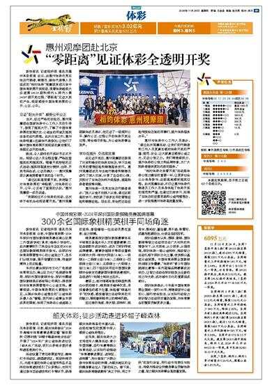 新快报讯 记者陆妍思 通讯员惠州体彩报道 近日,由惠州体彩优秀实体店代销者、销售员、媒体代表等人员组成的“相约体彩”观摩团来到北京中国体育彩票开奖现场,观看体彩超级大乐透第24129期和排列3、