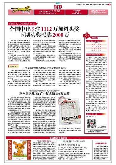 双色球12亿元派奖第11期 全国中出5注1112万加料头奖 下期头奖派奖2000万