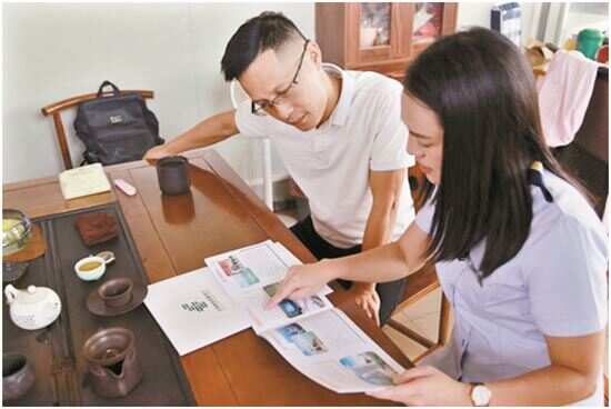 ■邮储银行客户经理向孙老板介绍特色金融服务。 |