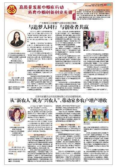 陈钰桃 云浮市家嘉农业科技发展 有限公司总经理 广东省乡村工匠经营管理 中级职称工程师 广东省农村乡土专家 “争当眼中有光、肩上有责任的新时代女性,在平凡的岗位上创造不平凡的成就。” ■采写:新快报记者 梁彧 ■图片:受访者供图 从“农业小白”到获“广东省农村乡土专家”称号,陈钰桃用了七年时间。 每天奔波在农贸市场、合作农户、生产基地之间,她带领云浮市家嘉农业科技发展有限公司(以下简称“家嘉农业”)由原来300亩种植基地扩展到现在的1200多亩,带动周边458名农户增加收入。 时间可以计数,脚步可以丈量,但其中所付出的汗水与辛劳,不可胜数。“农业是一个非常艰难的行业,需要天时地利人和全方位具备才能生存,但每当想到可以帮助很多农民,其中还有不少老人和妇女,这份事业所产生的社会价值,支撑着我们熬过很多个艰难时刻。”陈钰桃说。 返乡创业的“新农人” 陈钰桃是云浮市云城区人,2009年,已在大型食品公司积累了不少运营经验的她返乡创业,刚开始是经营建材生意,后来不忍心从事传统农业的父辈独自奔波劳累,陈钰桃决定放下自己原本的事业,转向帮助老一辈发展当地农业。2016年,陈钰桃于云城区腰古镇成立家嘉农业,并担任总经理一职。 然而,此前并没有农业经验和乡村工作背景的陈钰桃,一开局便遇到了难题。“公司成立后我们并没有明确的发展方向,既不知道该种什么、该卖什么,又缺乏成熟有经验的技术团队。”陈钰桃虽迷惘,但她坚信市场才是种植的前提条件。于是陈钰桃拉着小伙伴频繁到各大农产品交易市场走动,奔走中陈钰桃发现,云浮市内的农户没有对口企业订单的销售点,导致企业或机构每天采购工作繁重的同时,农户也很难实现订单农业。 “知道了怎么卖,才能卖得好。”理清思路后的陈钰桃立即行动起来,与当地企业或机构建立可连接的通道。“无论从产品新鲜的角度还是安全方面,都可以给双方提供更好的保障,同时增强农产品直接输出,提高农户收益和终端的效益,达到双赢的结果。” 推动一产二产融合发展 销售思路捋清了,产品也要跟上。通过聘请外省的专业技术人才,同时支持自己内部核心人员参与种植技术相关培训,团队实力开始壮大。 陈钰桃带着销路和技术走进了当地农户的家中,在土地统一规划基础上,主创采取对周边农户通过“公司+基地+农户”的合作模式,进行“统一运营管理,统一技术服务,统一市场营销”。然而,刚开始能接受这种新合作模式的农户并不多。“只有2户人,种植面积300亩,但正是从这里,我们踏出了带动农户增产创收、实现家门口就业的第一步。”陈钰桃说。 历经七年,合作种植的面积从200亩到现在的1100亩,从开始的2个人,发展到带动就业每年不少于300人。其中,让陈钰桃感悟最深的是每一个种植产区可以带动的老农户不少于100人,能够给到达退休年龄的他们提供就业机会,对农村妇女来说,在家门口就业,让她们在增加家庭收入的同时还可以照顾家庭,解决了当地很多农村贫困家庭的难题。 近年来,在当地党委、政府以及驻镇工作队的支持下,家嘉农业积极推动一产二产融合发展,以辣椒种植为主打品牌,建设350亩“辣椒标准化生产示范基地”,形成一条集育苗、种植、加工、销售于一体的辣椒产业链条。在鼓励农户参与种植的同时,积极吸纳周边农户就业:“在采摘高峰期,每天超过100名农户采摘辣椒,可以带动400多名农户增加收入。” 今年4月,在家嘉农业的剁椒生产车间里,云浮市首条剁椒生产线正式投入生产,同时吸纳了15名农户参与到生产线的工作。陈钰桃说,打造3000亩的“大河谷”农业带的计划正在有序进行中,能够将附近一带撂荒、零散的农田整合起来,帮助更多农户实现增产增收。