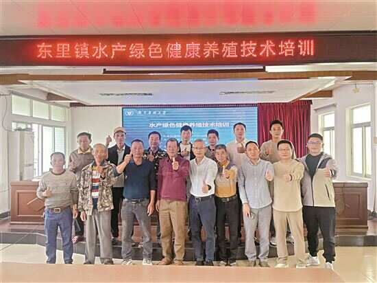 新快报讯 记者朱清海报道 近日,在广州市驻湛江市雷州市东里镇帮镇扶村工作队(下称“工作队”)积极推动下,广东药科大学蔡延渠农村科技特派员团队在东里镇举办了水产绿色健康养殖技术培训会,镇村相关工作人员、农业专业合作社、养殖农户等近40人到场参加。 会上,蔡延渠为大家详细介绍了实施绿色健康养殖“五大行动”的具体内容,指出积极落实“减抗、替抗、无抗”政策功在当下、利在千秋,是东里镇打造绿色水产品品牌的有力支撑。并深入讲解中草药替抗绿色养殖技术的组成内容、技术工艺、实施步骤、应用功能等,指出中草药替抗技术是解决水产绿色健康养殖疫病防控难题的有效方法与途径,还可以促进水产生长、改善风味等。 农村科技特派员团队还与参加“中草药替抗绿色健康养殖技术示范应用”的养殖农户进行技术实施的操作细节交流和合作协议签约,同时为养殖农户送上工作队队员方春等人捐赠的“财富通”发酵桶、广东一源生物科技有限公司赠与的中草药动保产品。本次培训会实用性强,受到参训人员一致好评和认可。 农村科技特派员团队深入一线走访企业、合作社、农户,了解南美白对虾、石斑鱼、金鲳鱼等优势特色品种的养殖情况,在六格村、雷州市越秀海晟源对虾养殖科技有限公司、雷州市吉凯种养殖专业合作社进行科技服务点挂牌,定点开展产业科技帮扶工作。蔡延渠表示,未来将认真落实农村科技特派员工作任务,致力推动养殖企业与农户应用“中药芯”绿色替抗技术,切实促进东里水产业高质量发展。