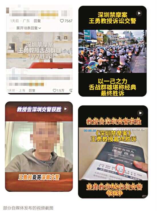 法学教授告深圳交警胜诉? 假的! 近日,多段“教授告深圳交警胜诉”的视频在各大平台传播,甚至有视频称该教授“以一己之力舌战群雄”。12月9日,“广州政法”微信公众号发布了一条名为《“法学教授”告深圳交警胜诉?真相来了!》的推文,对在多个社交平台所流传的一些短视频进行“打假”。据核实,这些视频中包括案发时间、当事人真实身份、案件结案情况等多个关键信息,均与事实不符。 新快报记者观察到,国内多个主流媒体及多地的政法类官方账号,均推送了此事件的澄清文,而这些推文的流量都较为可观,部分账号的阅读量都突破了“10万+”。 流量是社会情绪的反映。围绕“法学教授告深圳交警胜诉”一事,何以“假视频”和“真辟谣”都能获得高流量?折射出怎样的社会情绪?又能给相关部门的社会治理工作带来什么启示? ■采写:新快报记者 罗琼 案件还原 王勇并非教授 也未胜诉 一个发生在2020年,开庭审理在2021年,此后被反复传播和讨论多次的案件,近期因部分自媒体重新发布的相关片段再度“翻红”。 2020年9月11日,针对王勇在深圳市龙岗区实施驾驶摩托车在禁止通行的区域、路段、时段通行的违法行为,深圳市公安局交通警察支队龙岗大队(下称“龙岗交警大队”)对王勇作出扣留机动车的行政强制措施以及罚款2000元的行政处罚决定。王勇认为交警执法过程中存在问题,先后提起了行政复议和行政诉讼。 王勇一审败诉,法院于2021年10月28日判决驳回王勇的全部诉讼请求。王勇提出上诉,深圳市中级人民法院于2022年2月15日判决驳回上诉,维持原判。 据悉,该案审判当日在中国庭审公开网进行了直播,随后录像发布在庭审公开网的直播回顾栏目里。众多自媒体所引用的庭审录像,便来源于此。 加工改造 “近日”发生的 三年前旧事 围绕庭审录像这一原始素材,众多自媒体开始了“后期加工”。 比如,在案发时间上,近期热传的“法学教授告深圳交警胜诉”视频中,不少自媒体称该案发生在2024年,或称该案庭审时间是“近日”。而根据上述事实,该案实际是三年前的旧事。 针对王勇的身份,自媒体也是叠加了多层buff。因王勇在庭审过程中熟练引用相关法律条文,于是被戴上了“深圳大学法学院教授”或“深圳法学教授”的“帽子”。而实际情况是,王勇并非深圳大学法学院教职工。据了解,诉讼时王勇的身份是深圳信息职业技术学院的老师。 经自媒体加工后更广为流传的是,大量转发的庭审录像中称“法院判决王勇教授胜诉,撤销原行政处罚”“王教授状告交警胜诉,不仅免予了2000元罚款,还按照主张获得了摩托车折旧费35元……” 事实是,法院判决认定,王勇驾驶摩托车在禁止通行的区域、路段、时段通行的行为,违反了《深圳经济特区道路交通安全管理条例》第一百一十四条第一款的规定,龙岗交警大队对王勇作出扣留机动车的行政强制措施,及作出罚款2000元的处罚决定适用法律正确。 更为可笑的是,网络上流传“王勇教授胜诉,现在深圳电动车都不查了”,称王勇以一己之力改变了一座城市的交通规则。而事实上,该案中王勇是在限行道路上驾驶摩托车被罚,而非电动自行车。深圳的禁摩政策也并没有因王勇起诉交警部门发生变化。 解读流量 体察假消息背后的社会真情绪 信息时代,流量就像指南针,指向社会大众关注的方向。当某个事件获得高流量时,这往往意味着它触及了某些难以言说的社会情绪点。当前,“法学教授告深圳交警胜诉”一事已经被证实为假消息,但其背后所蕴含的社会“真情绪”仍然值得被正视。 其一,是部分公众对少数执法部门存在质疑情绪,希望看到个体挑战权威成功的案例。 新快报记者梳理各大平台所流传的“法学教授告深圳交警胜诉”视频发现,点赞量较高的内容,大多为王勇本人当庭质疑有关部门执法程序是否正当的视频切片,并被打上了“王勇孤身一人舌战群雄”“法庭名场面”“教科书级别的普法”等字眼。而评论区的高赞留言,往往是觉得王勇的行为“大快人心”,或者感慨“知识就是力量”等。 案件和视频经过多年的发酵和传播,王勇本人被自媒体层层“加工”和“包装”,从一名“普通市民”变成了可以独自应诉且熟练运用法律条文的“法学教授”,这符合公众对所谓“维权英雄”的期待,也容易引发情感共鸣。 其二,民生大事无非是衣食住行,与老百姓出行相关的政策,总能引发社会热议。 王勇状告深圳交警一案的开庭审理时间为2021年,相关庭审录像在2021至2023年已先后被传播和讨论过多次。今年,这一旧事之所以再被自媒体“翻红”,除了有平台的流量机制在起作用外,也与普罗大众对于禁摩等交通管理举措的紧密关注有关,它们也成为了公众表达相关观点和情绪的出口。 其三,越是社交媒体活跃的时代,公众对于真相的需求就越大。 近半个月来,除“广州政法”公众号外,国内多个主流媒体以及全国多地的政法类官方账号,均发布推文对“法学教授告深圳交警胜诉”视频进行了“打假”。从阅读、转发、点赞以及评论等互动数据来看,这些推文的流量都比较可观,部分账号的阅读量都突破了“10万+”。相关留言区讨论不断,许多网友都表达了对于部分自媒体账号煽动话题、诱导公众的不满与厌恶,也为真实信息能够得到及时公开而点赞。这也意味着,公众其实并不希望被流量所挟裹,更