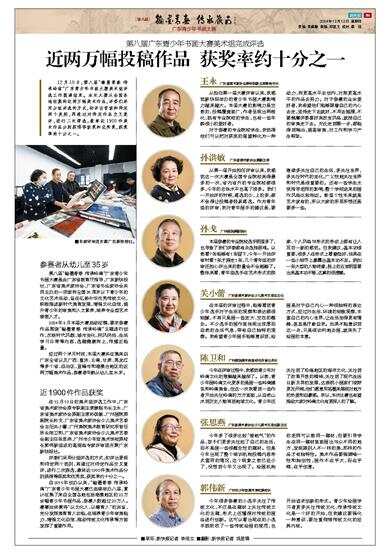 第八届广东青少年书画大赛美术组完成评选 12月10日,第八届“翰墨青春 传承岭南”广东青少年书画大赛美术组评选工作圆满结束。本次大赛从全国各地征集的近两万幅美术作品,评委们采用分组评选的方