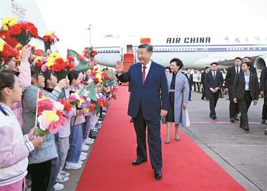 出席庆祝澳门回归祖国25周年大会暨澳门特别行政区第六届政府就职典礼并对澳门进行视察 澳门特别行政区行政长官贺一诚等前往机场迎接 据新华社电 中共中央总书记、国家主席、中央军委主席习近平18日下午乘专机抵达澳门,出席将于20日举行的庆祝澳门回归祖国25周年大会暨澳门特别行政区第六届政府就职典礼并视察澳门。 16时许,习近平乘坐的专机徐徐降落在澳门国际机场。习近平和夫人彭丽媛走出舱门,向欢迎人群挥手致意。澳门警察乐队奏响热情洋溢的欢迎曲,舞龙舞狮表演喜气欢腾。舷梯旁,两名少年儿童向习近平和彭丽媛献上鲜花。在澳门特别行政区行政长官贺一诚和夫人郑素贞陪同下,习近平和彭丽媛同前来迎接的人员亲切握手。数百名澳门青少年和各界群众代表挥动国旗、特别行政区区旗和鲜花,表达热烈的欢迎。 习近平这次赴澳门受到海内外高度关注,中外记者在机场等候。习近平走到采访区,向在场记者问好。他表示,每次来到美丽的澳门,都感到十分高兴。这次来,是和同胞们一起庆祝澳门回归祖国25周年,看看澳门这几年的新发展新变化。他代表中央政府和全国各族人民,向全体澳门居民致以诚挚问候和良好祝愿。 习近平指出,25年来,具有澳门特色的“一国两制”实践取得了举世公认的成功,展现出勃勃生机和独特魅力。国家的发展日新月异、势不可挡,澳门的发展厚积薄发、未来可期。这是澳门居民的光荣,也是全国人民的骄傲。只要充分发挥“一国两制”的制度优势,敢于拼搏、勇于创新,澳门一定能创造更加美好的明天。 习近平强调,澳门是祖国的掌上明珠,我一直惦念着这里的发展和全体居民的福祉。接下来几天,我会走一走、看一看,同各界朋友广泛深入交流,共商澳门发展大计。 中共中央政治局常委、中央办公厅主任蔡奇,中共中央政治局委员、全国人大常委会副委员长李鸿忠,中共中央政治局委员、中央军委副主席何卫东,中共中央政治局委员、国务院副总理何立峰,全国政协副主席兼秘书长王东峰等陪同人员同机抵达。中共中央港澳工作办公室、国务院港澳事务办公室主任夏宝龙先期抵达,并到机场迎接。 全国政协副主席何厚铧,澳门特别行政区候任行政长官岑浩辉,澳门特别行政区现任行政、立法、司法机构负责人等前往机场迎接。 中央政府驻澳门联络办公室主任郑新聪,外交部驻澳门特派员公署特派员刘显法,中国人民解放军驻澳门部队司令员于长江、政委林庆华等也到机场迎接。
