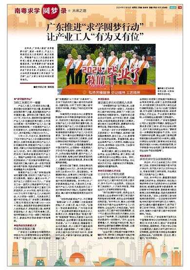 近年来,广东深入推进“求学圆梦行动”,推动一线职工、产业工人特别是农民工实现学历、能力双提升。伴随着产业工人队伍建设改革的深入推进、新就业形态劳动者的蓬勃发展,“求学圆梦行动”面临着新的任务和挑