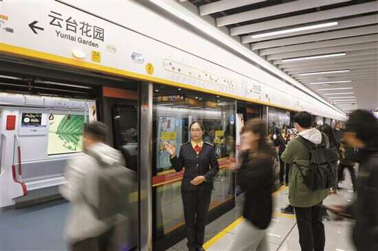 ■记者从云台花园站登上内环列车,20分钟后抵达琶洲站。 |