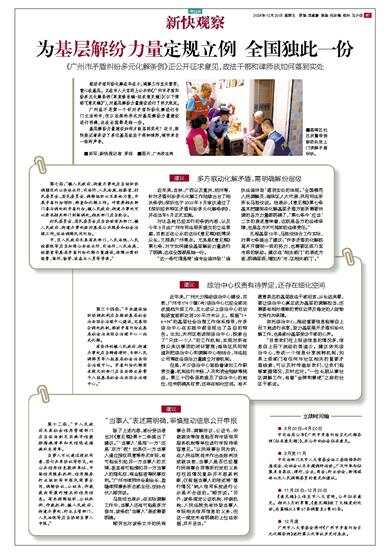 《广州市矛盾纠纷多元化解条例》正公开征求意见,政法干部和律师谈如何落到实处 推动矛盾纠纷化解在早在小,调解工作至关重要,重心在基层。正在市人大官网上公示的《广州市矛盾纠纷多元化解条例(草案