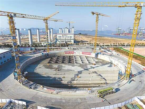 ■狮子洋大桥东锚碇完成全部填芯施工。 雷健/摄 |