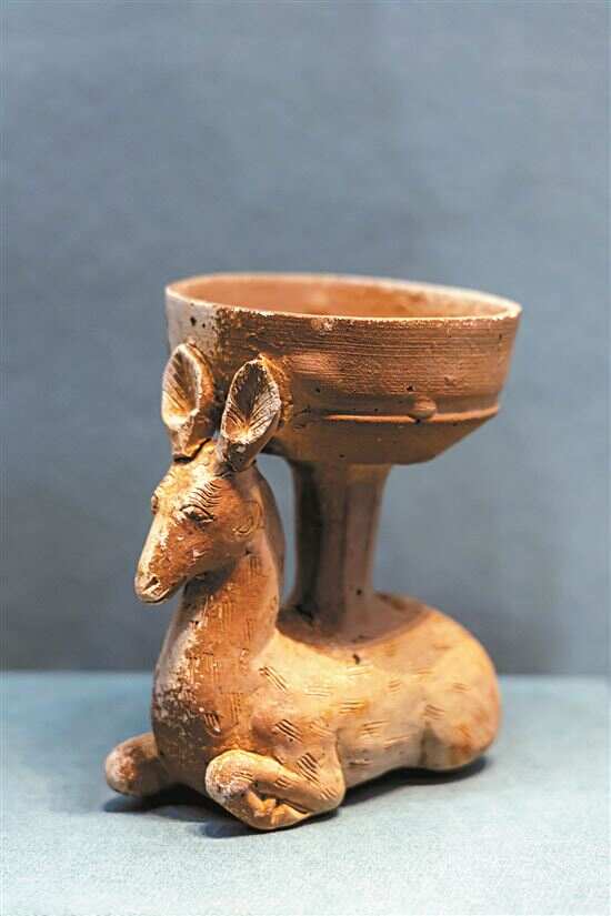 ■陶鹿座灯,西汉(公元前202-公元8年),2018年广州市胸科医院出土。 |