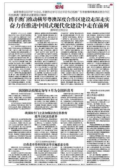省委常委会召开扩大会议,专题传达学习习近平总书记视察广东考察横琴粤澳深度合作区和视察澳门重要讲话重要指示精神 黄坤明主持会议 新快报讯 12月21日上午,省委常委会召开扩大会议,同时