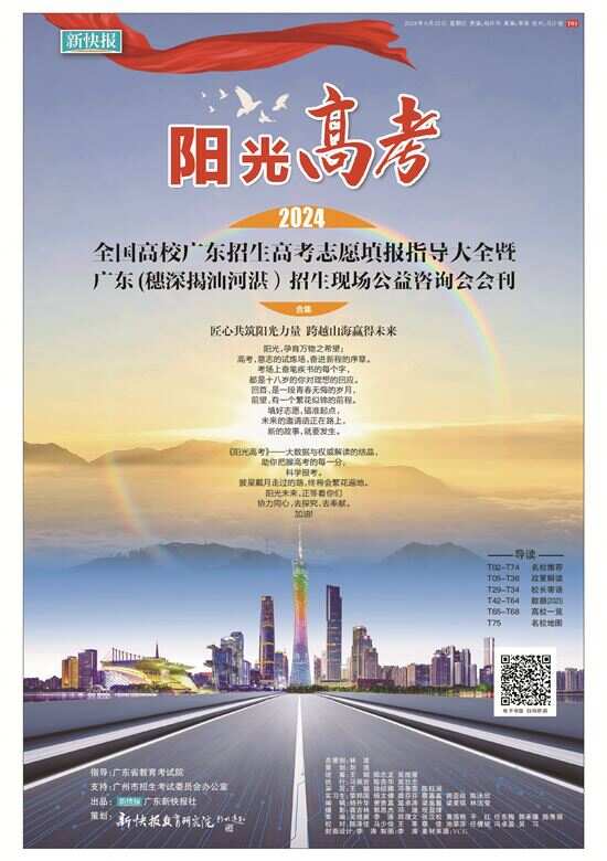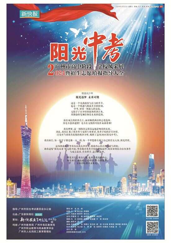 新快报教育研究院篇 这一年,“新快教育”亮点多多 《阳光中考》特刊助攻志愿填报 除了关注学位供给、中考政策的变化,新快报更主动担当社会责任,通过专业内容帮助广州考生合理择校。5月22日,由广州市招考办指导,广东新快报社编印的《阳光中考》志愿填报特刊全城首发上线。5月24日,随着志愿填报临近,新快报正式开启公益赠阅,向全城初三考生免费派发《阳光中考》,活动覆盖华南师范大学附属中学、广东实验中学、广州市铁一中学、广州市真光中学、广州市第六十五中学、广州市南武实验学校、广州南方学院番禺附属中学、广州市香江中学、广州龙涛外国语学校、广州思源学校等多所学校。 “特刊汇总各批次分数线,让填报志愿省时省力”“特刊每部分介绍得很详细,内容涵盖政策解读、中考填报建议等,是一本不错的报考指南书”“补充了许多政策信息和分析,内容全面,有关志愿填报的部分非常实用”……在公益派送过程中,《阳光中考》收获了一众师生好评。在明年中考志愿填报期间,2025年《阳光中考》特刊将一如既往通过新快报APP、“广州招考”公众号、线下派送等多种方式与考生、家长见面。 双高协同阳光育人 对于高考,志愿填报的重要性不言而喻。为了给广东高考考生和家长提供更多官方的渠道,近距离和自己心仪的高校进行充分的面对面咨询,新快报主动搭建了高校与考生“双向奔赴”的平台。 “人太多了,高校也好多,幸亏来得早……”6月15日,由羊城晚报报业集团支持,广东新快报社与卓越教育联合主办的“阳光高考 赢向未来——全国高校广东招生2024高考志愿填报现场公益咨询会”广州专场在广州越秀国际会议中心举行。包括中山大学、华南理工大学、中央民族大学等近百所省内外知名高校集体亮相,招生负责人、志愿指导专家为近万名家长和学生带来了最新的招生资讯和填报指引。新快报APP客户端进行全程直播,线上线下人气火爆。当天活动还举行了“2024广东双高协同育人阳光联盟”启动仪式,来自中山大学、华南理工大学、华南农业大学、中国传媒大学等院校以及广州市第六十五中学、广州市第五中学、广州市真光中学等中学的嘉宾共同见证。 这场活动仅为序章,在今年6月,广东新快报社联合六大生源市主流媒体举办“阳光高考 赢向未来——全国普通高校2024广东招生志愿填报现场公益咨询会巡展”系列活动。系列活动实现“两线”(线上+线下)“六城”(广州、湛江、揭阳、深圳、汕头、河源)“八场”(含华南农业大学珠江学院艺术类专场)目标,联动全国及广东高校数量逾500所,辐射生源群体约占广东40%,规模及影响力位居省内同类活动前列。 “考生咨询非常踊跃,我们一度忙不过来。通过咨询会,我们与考生面对面沟通,我感觉效果非常好。同时,也感谢主办方的精心组织。”在揭阳专场,广东工业大学一名招生老师分享说。在河源专场,一名考生则表示,“现场咨询比自己在网上搜索的信息更准确,对于我们了解学校招生、专业填报很有帮助。” 在每个咨询会现场,新快报还设立摊位,将编印的《阳光高考》志愿填报指导特刊现场以公益赠阅活动派发给家长考生。该特刊涵盖了全国高校招生信息、高考录取规则解析、本科及专科招生政策变化及往年各高校录取分数线一览表等板块,内容翔实,受到各地考生及家长好评。 你的心声我倾听 2024年上半年,多个社会热点话题引爆网络,引起社会各界对学生心理问题的高度关注。 今年5月,新快报携手华南师范大学心晴热线团队,在广东省青少年心理健康志愿服务总队的支持下,开设“202心事咨询室”专题栏目,致力于为有育儿困惑的家长、有成长烦恼的学生、为教育问题忧虑的教师提供安全、舒适、专业的心理援助及分享平台。栏目一经推出,便陆续收到多方来自师生、家长的匿名来信。新快报邀请心理专家以回信和专业解读的方式,从心理学、社会学等多角度,逐一分析问题并提供专业的建议。截至12月22日,“202心事咨询室”已刊登回信超30封,并在每周四准时“上新”。 “新快教育”时间轴(部分活动) 3月12日:新快报年度力作2024《高职力量》春季高考特刊正式上线 4月21日:2024广东高考志愿填报大会暨人气高校见面会在广州越秀国际会议中心举行 5月11日:“202心事咨询室”专题栏目开设并接收来信 5月22日:新快报2024《阳光中考》特刊全城首发 6月6日:新快报爱心制作的广州市招考办高考祝福语登上广州塔 6月15日:阳光高考 赢向未来——全国高校广东招生2024高考志愿填报现场公益咨询会在广州启幕、“2024广东双高协同育人阳光联盟”成立 6月23日:新快报2024《阳光高考》特刊重磅发布 10月13日:“新快教育”视频号精彩上线 10月17日:新快报携手广东省人力资源研究会基础教育与教师发展专业委员会推出崭新栏目“南粤基础教育风采展” 11月17日:首届综评高校及港澳高校见面会暨2025年广东招生说明会在越秀国际会议中心举行、全国综评高校及港澳高校联盟启动