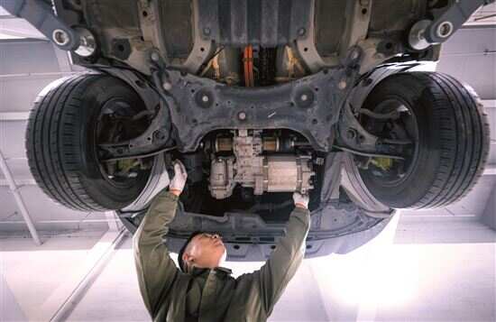 ■汽车维修师在检查一辆新能源汽车的电机。新华社发 |