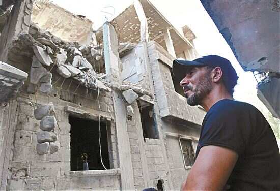 ■6月19日,在叙利亚大马士革的雅尔穆克难民营,穆罕默德·阿卡德查看被战争毁坏的自家住宅。新华社发 |