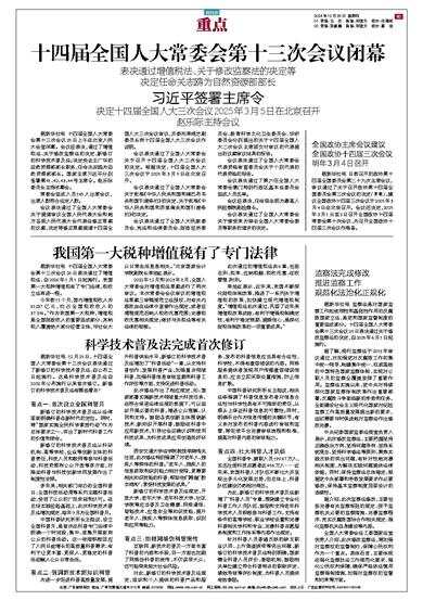 表决通过增值税法、关于修改监察法的决定等 决定任命关志鸥为自然资源部部长 习近平签署主席令 决定十四届全国人大三次会议2025年3月5日在北京召开 赵乐际主持会议