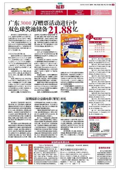 广东3000万赠票活动进行中 双色球奖池储备21.88亿
